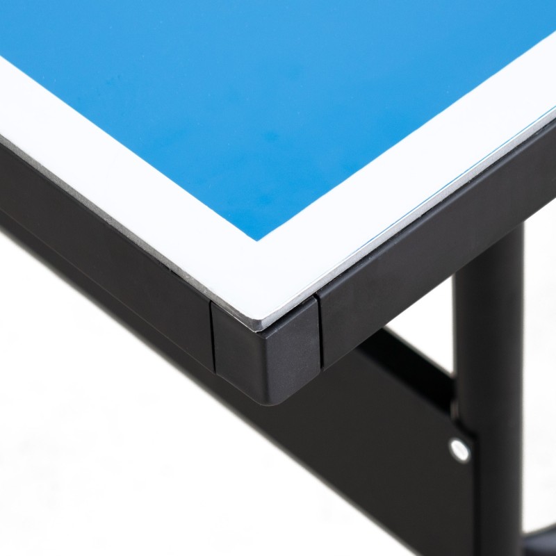 ¿Necesitas ahorrar espacio? La mesa se pliega de forma rápida y sencilla en tres posiciones: juego completo, frontón individual y almacenamiento. Perfecta para espacios polivalentes.