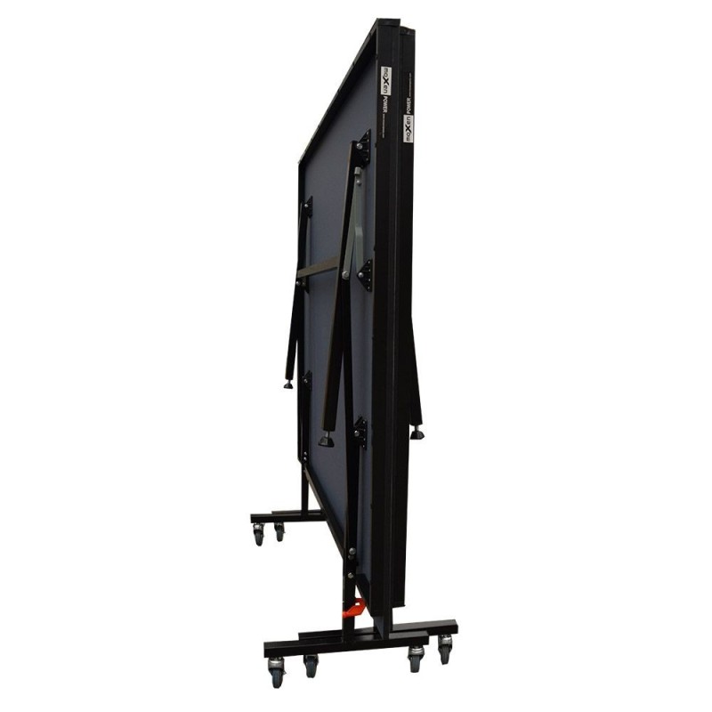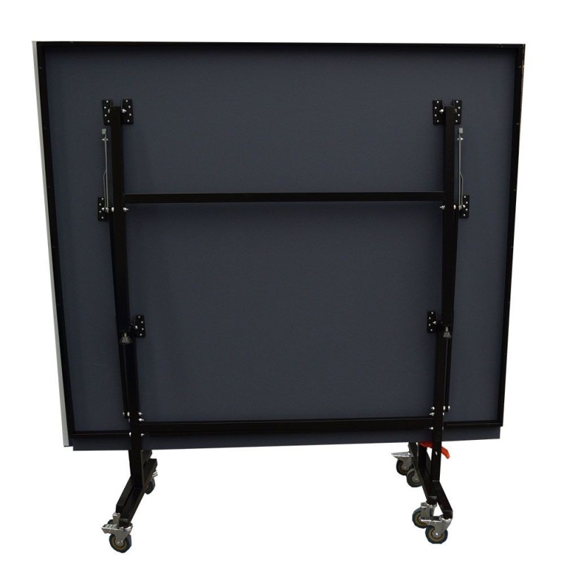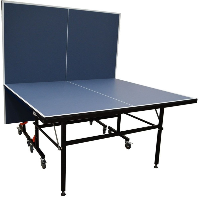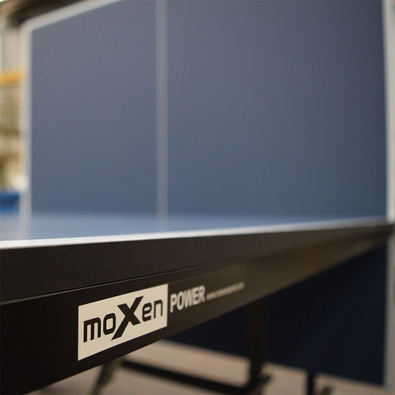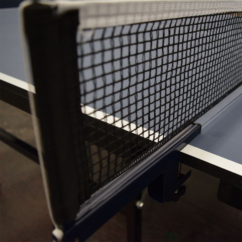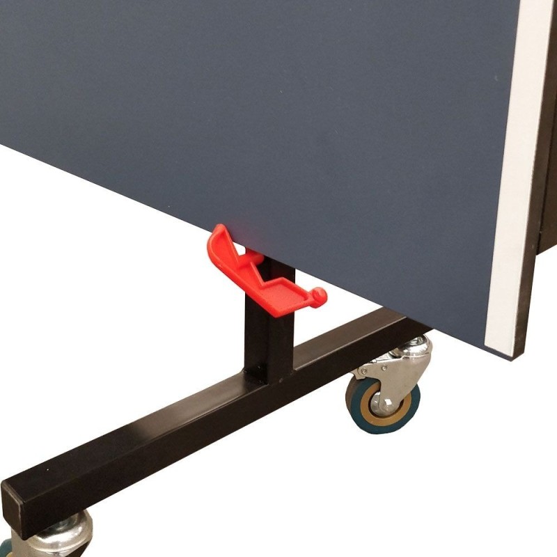 La mesa está fabricada con tablero MDF azul de 15mm que proporciona el bote reglamentario de la pelota y reforzado con marco de acero de 30x15mm en todo su contorno para dotar al tablero de una mayor solidez.