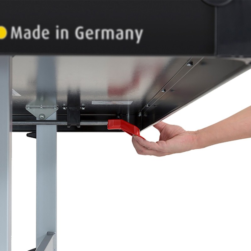 Gracias a su sistema de plegado compacto esta mesa de ping pong Sponeta se puede guardar ocupando un espacio reducido cuando no se vaya a utilizar y, además, permite colocarla en tres posiciones distitnas: juego clásico, frontón o plegada. Incorpora un sistema de fácil apertura permite de forma cómoda abrir y cerrar la mesa de ping pong mediante unos bloqueos que se encuentran debajo del tablero.
